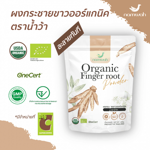 ผงกระชายขาวออร์แกนิค ตราน้ำว้า ขนาด 100 กรัม ละลายทันที ไม่มีน้ำตาล USDA, EU ORGANIC CERTIFIED